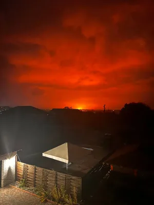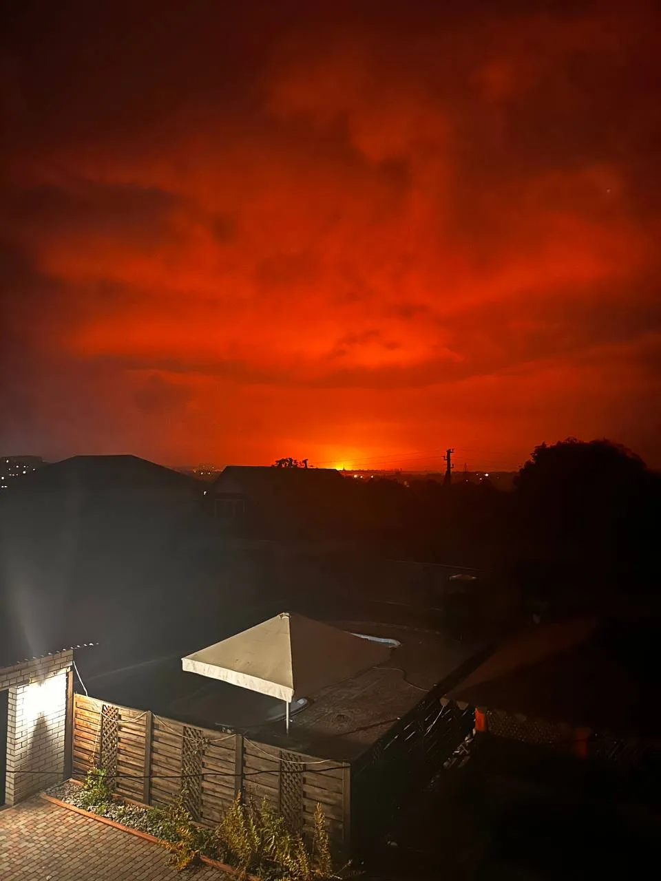 Предположительно поражена цистерна с горючим или склад.