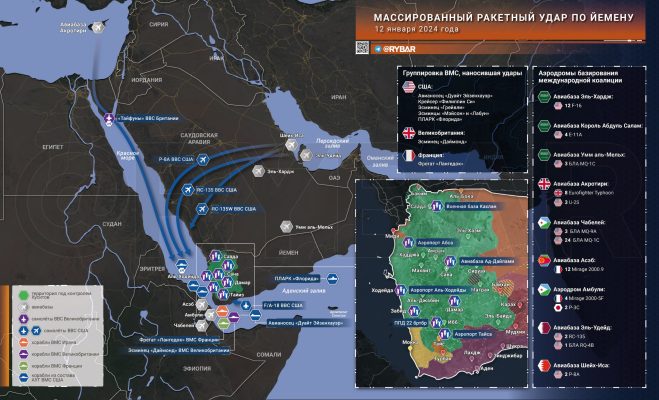 - В полтретьего ночи самолетами F-16 ВВС США, а также F/A-18 с авианосца и британскими истребителями «Тайфун» был нанесен удар по порту и аэродрому Аль-Ходейды.