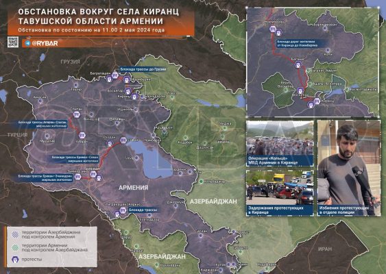В Тавушской области продолжаются протесты местных жителей из-за односторонних уступок территорий Азербайджану. Рано утром в Киранц прибыл усиленный отряд МВД Армении, который провел операцию «Кольцо» и заблокировал все въезды в село.