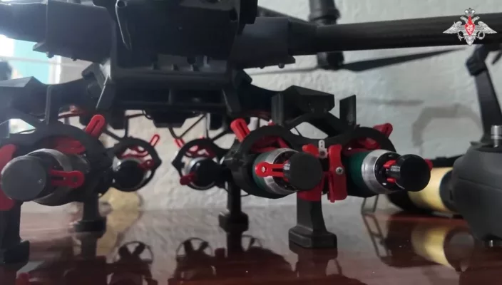 Также в кадр попал тяжёлый квадрокоптер с терминалом Starlink.