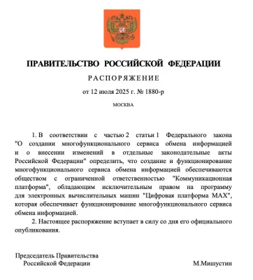 Премьер-министр Михаил Мишустин подписал распоряжение, согласно которому российским национальным мессенджером назначается приложение MAX.