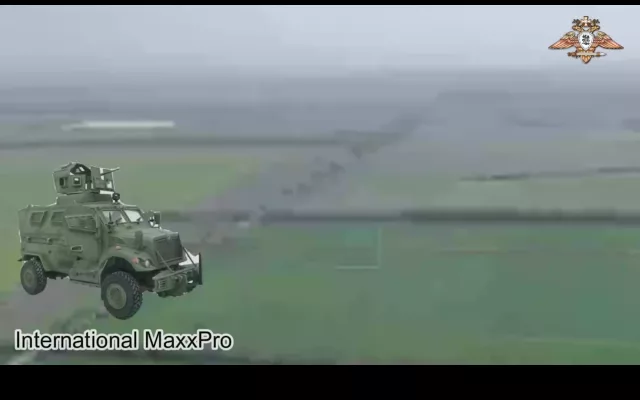 В районе населённого пункта Попов Яр бронеавтомобиль International MaxxPro ВСУ подорвался на мине и был добит точным ударом FPV-дрона 2 мотострелкового батальона 102 полка 150 мотострелковой дивизии 8 гвардейской общевойсковой армии ВС РФ. Слаженные действия наших бойцов не оставляют противнику ни единого шанса сохранить технику на поле боя.