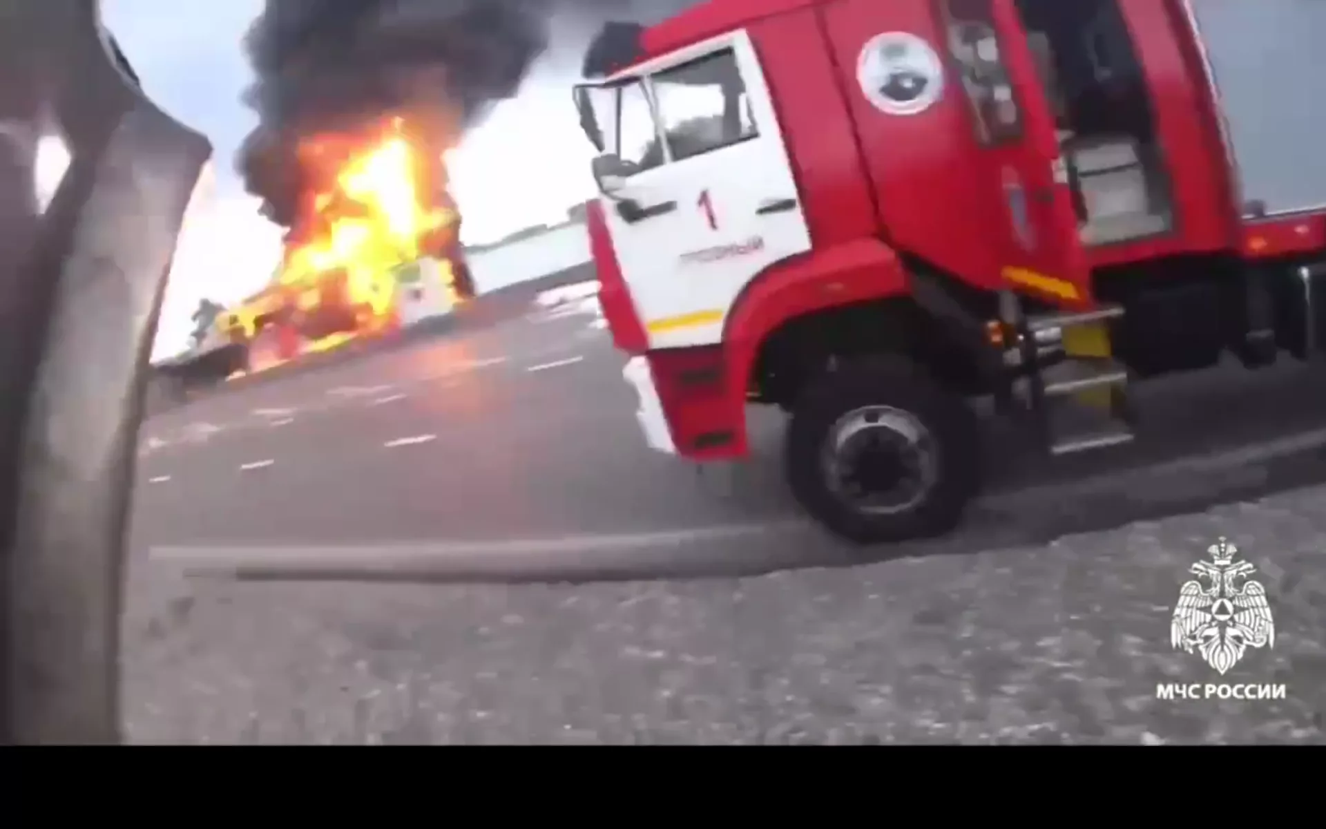 Судя по видео, заправка взорвалась, когда пожарные уже работали на месте ЧП. Спасатели чудом не пострадали.