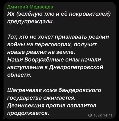 Так он отреагировал на начало наступления ВС РФ в Днепропетровской области: