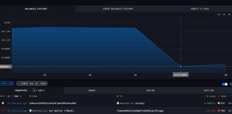 Более 48 миллионов долларов активов биржи были переведены на неизвестный адрес. Общие активы кошельков, подключенных к Nobitex, резко сократились с 1,8 миллиарда долларов до примерно 100 миллионов долларов – снижение составило более 95%.