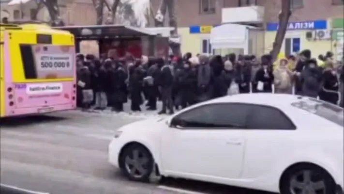 - На кадрах очереди на автобусных остановках в Киеве из-за проблем с электротранспортом.