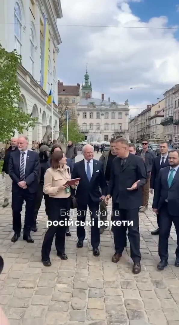- Встречая монарха Андрей Садовый обратился к Карлу XVI, назвав его «Your Emergency» вместо «Your Majesty».