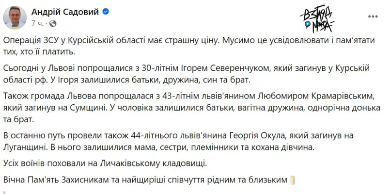 Мэру Львова, по всей видимости, скоро не будет хватать кладбищ, но пока он призывает помнить о погибших.