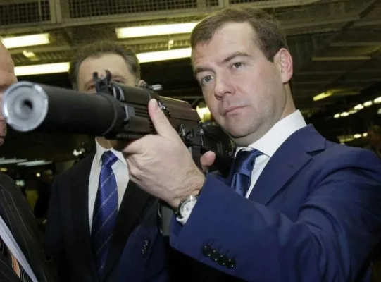 Но, так как эта статья рассчитана на дураков, то и картинка к этой статье — как Медведев стреляет из какого-то там оружия, как будто бы целится в мигранта,- тоже для дураков.