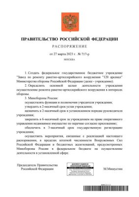 Ранее сегодня премьер заявил на сегодняшнем заседании координационного совета по обеспечению потребностей ВС РФ, что меры по дальнейшему кратному увеличению внутреннего производства востребованных ВС РФ вооружений и техники уже приняты, для чего максимально задействованы заводские мощности ОПК страны.