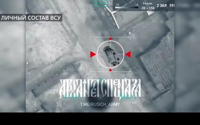 Оператор БпЛА ГВ «Север» точным сбросом попал по автомобилю украинских фашистов, уничтожив его и ранив боевиков.