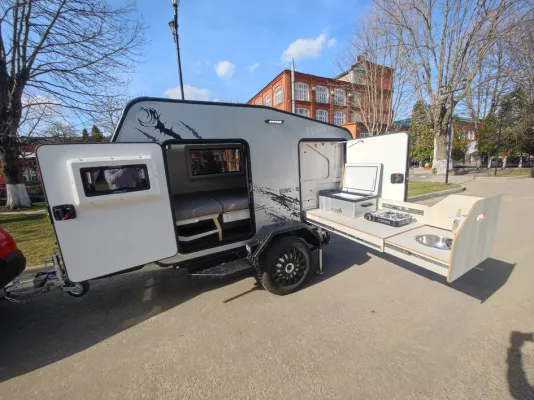 Для тех, кто хочет не зависеть от внешних условий, предусмотрены резервы автономного электроснабжения: розетки на 12 и 220 В, освещение в четырех зонах, USB-порты, наружное освещение и возможность подключения внешних источников питания. Дополнительно можно установить солнечные панели, гелевый аккумулятор, холодильник, автономный обогреватель, биотуалет, бак для воды и даже бойлер. Это делает прицеп пригодным для круглогодичного использования — хоть зимой, хоть летом.