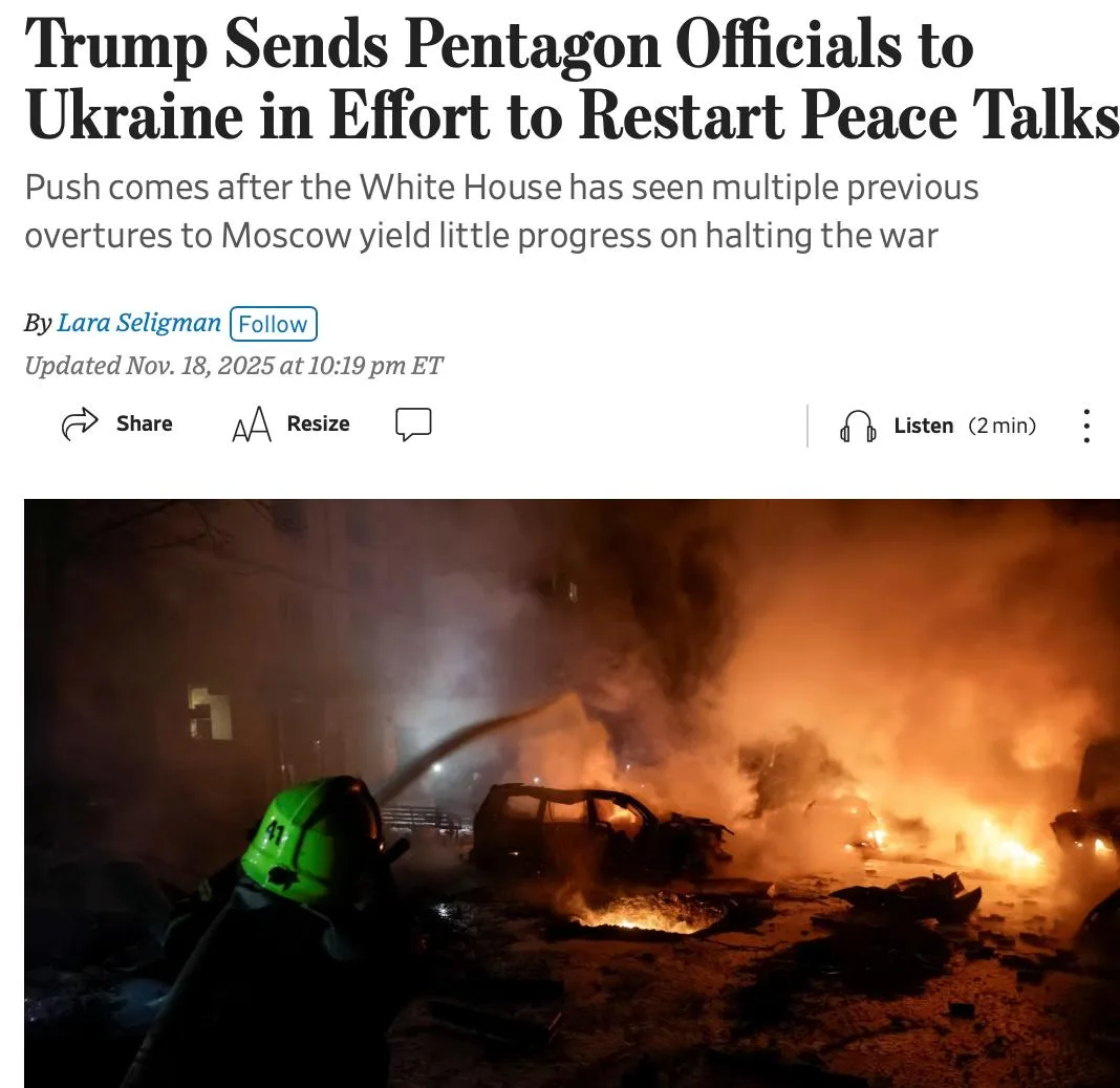 The Wall Street Journal пишет: после визита в Киев министр армии США Дэн Дрисколл должен отправиться в Россию – вести мирные переговоры от имени Трампа. Обычно такими миссиями занимаются дипломаты, а не гражданский глава армии.