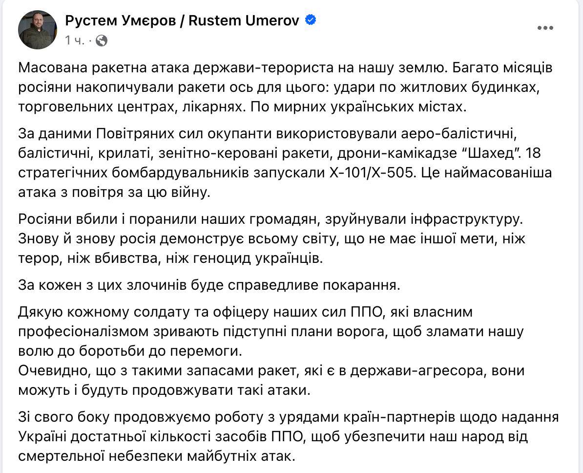 Министр обороны Умеров заявил, что обстрелы как сегодня РФ способна повторять регулярно: