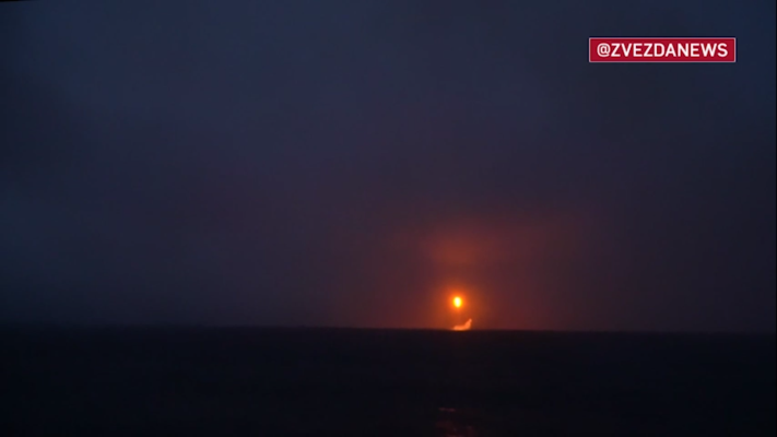 Старт ракеты «Синева» с атомной подлодки «Тула» и взлет стратегического ракетоносца Ту-95МС.