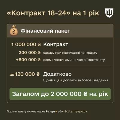 - выплата на 1 млн гривен (2 300 000 рублей) — 200 тысяч сразу при подписании и 800 тысяч потом двумя частями в процессе года службы;