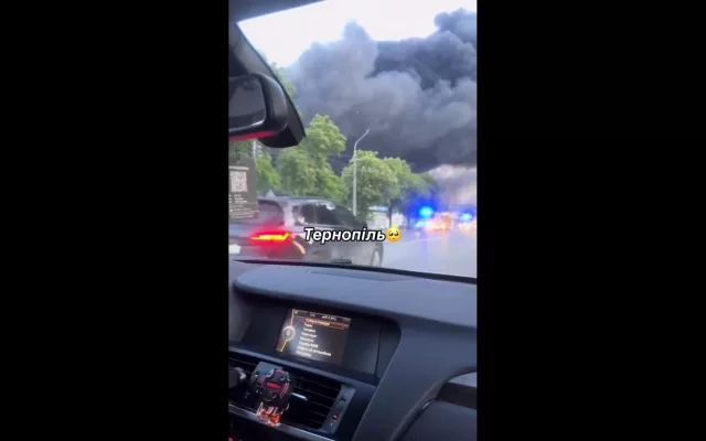 Судя по видео, снятым жителями Тернополя, на месте прилёта до сих пор полыхает крупный пожар.