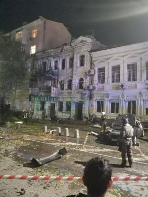 В Ростове-на-Дону российские зенитчики сбили два дрона: один упал в центре, другой в западной части города. Повреждены несколько автомобилей, а также фасады и остекление трех зданий. Один человек пострадал.