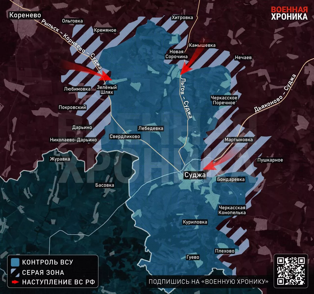 Из-за постепенно раскисающих от дождей (они будут идти там всю следующую неделю) дорог ВСУ начинают сосредоточивать технику вдоль трёх асфальтированных трасс: Дьяконово — Суджа, Льгов — Суджа и Рыльск — Коренево — Суджа в сторону украинской границы. Как только техника и люди выводятся из посадок для перегруппировки, по ним сразу летят ФАБы, после чего остатки добивает артиллерия и дроны.