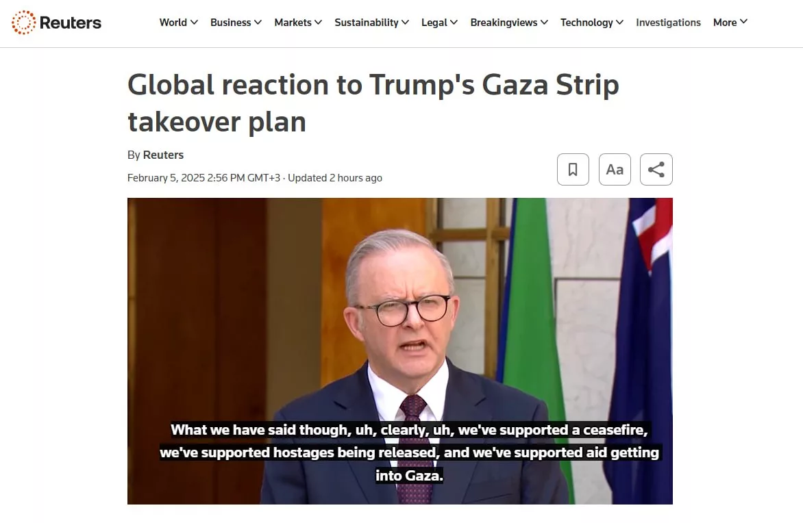 «Заявления Трампа неприемлемы. Любые планы, исключающие палестинцев, приведут к ещё большему конфликту».