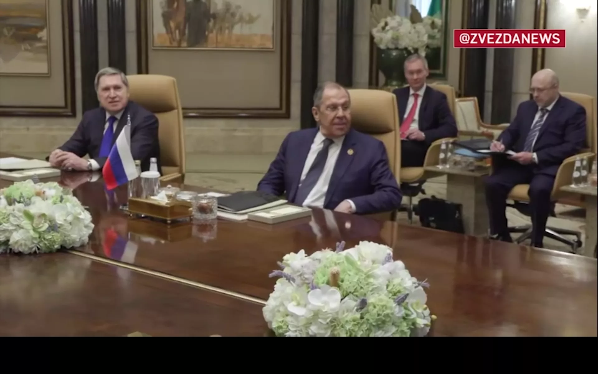 - Российскую делегацию за столом переговоров представляют глава МИД Сергей Лавров и помощник президента Юрий Ушаков;