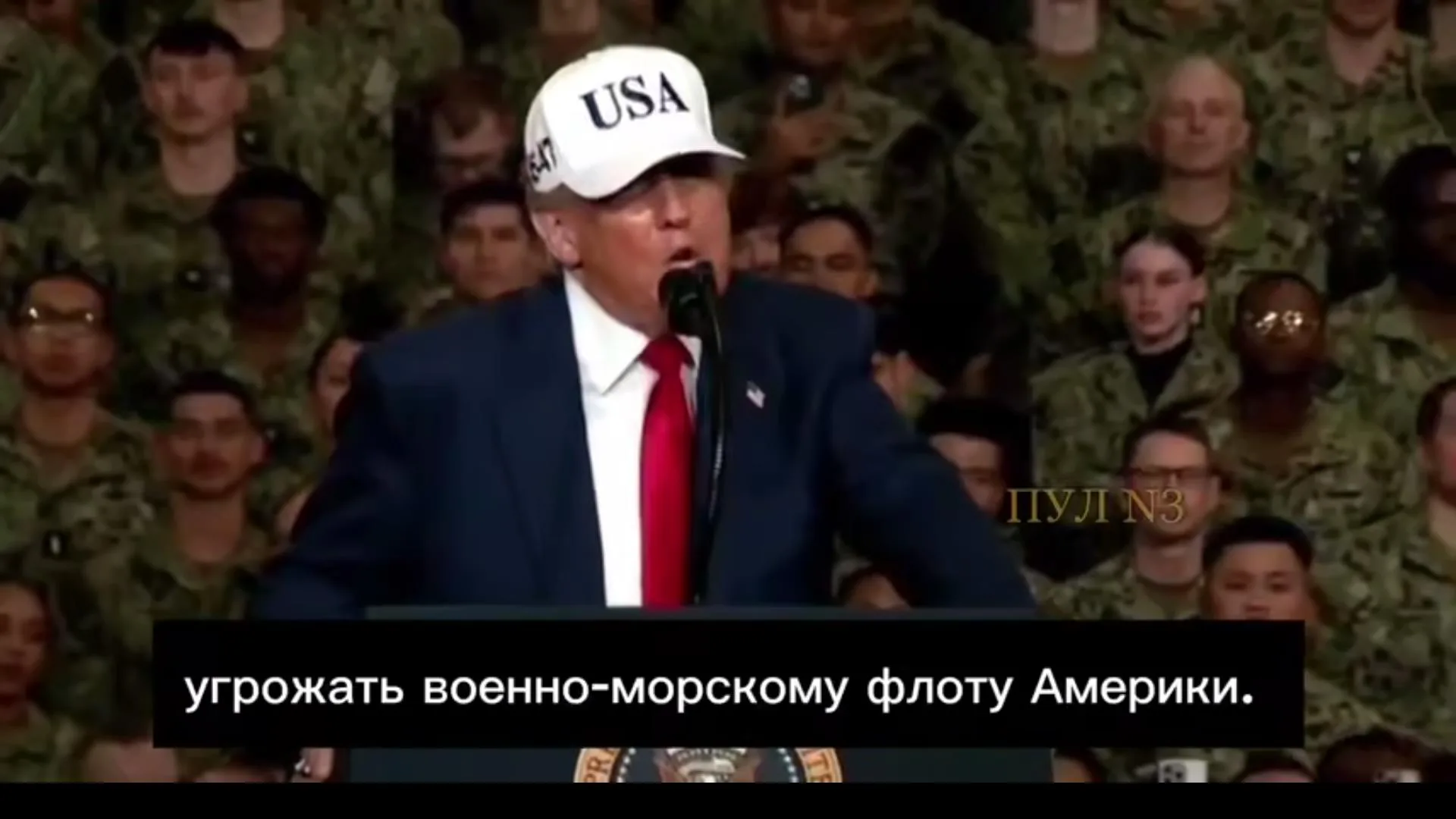 «Ни одному врагу и в голову не придет угрожать военно-морскому флоту Америки. Отныне, если мы участвуем в войне – мы выиграем ее так, как никто и никогда не выигрывал. Вы же знаете, если мы вступим в войну, мы разбомбим страны», – сказал Трамп.
