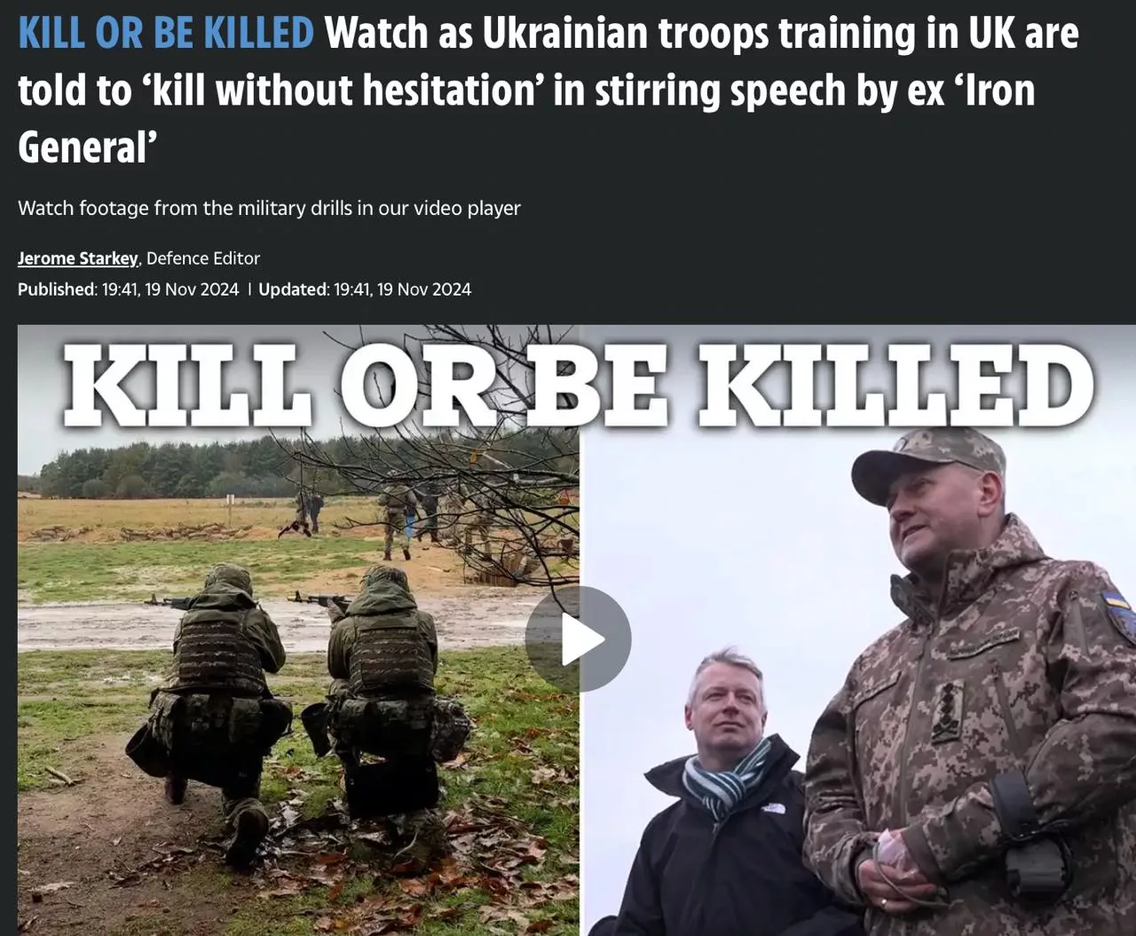 «Помните, что война с каждым днем становится все более жестокой. Она почти не оставляет шансов на выживание. <…> Научитесь не бояться смерти», – сказал Залужный во время посещения им одной из баз на востоке Британии, где проходят подготовку ВСУшники.