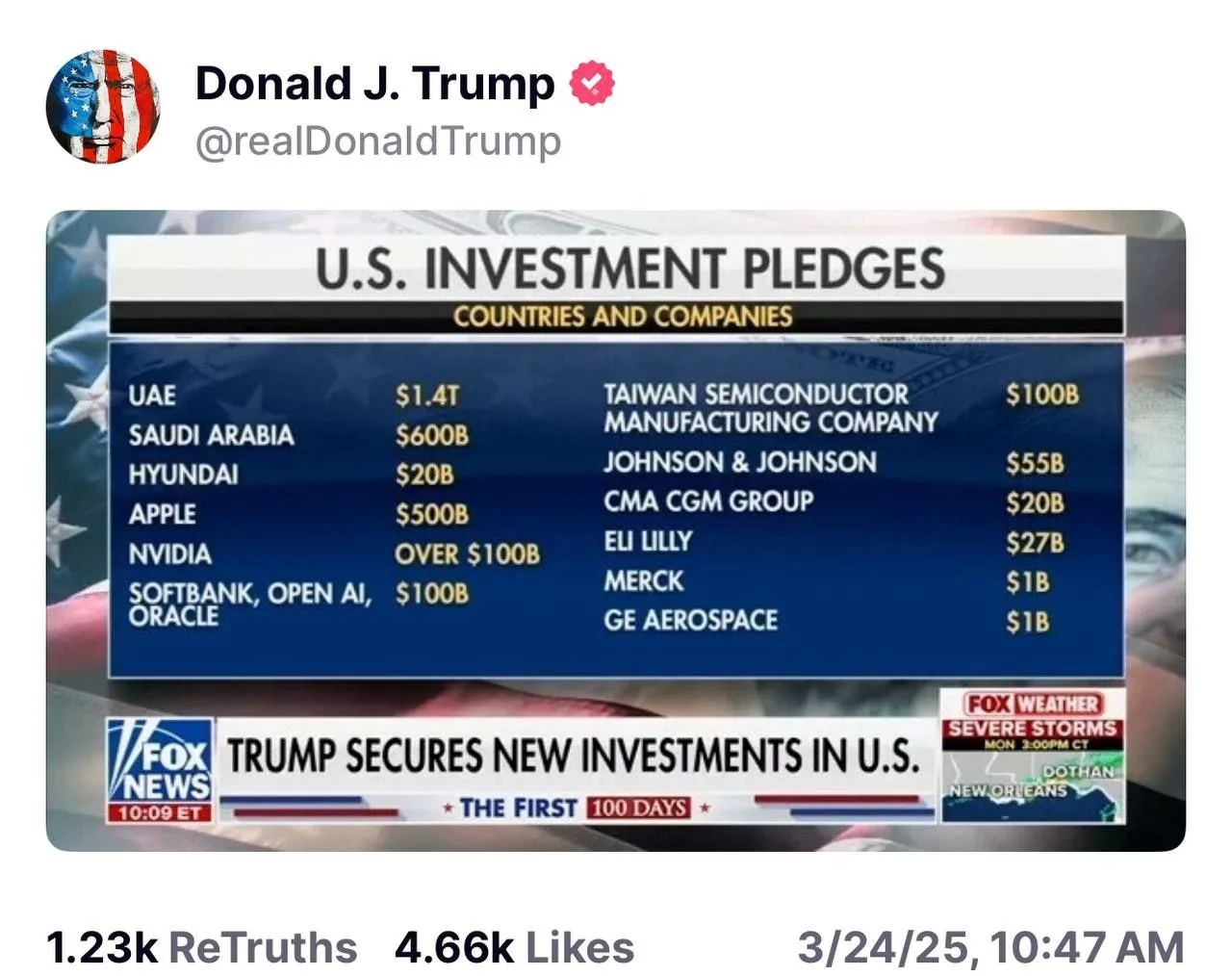Около $3 триллионов новых прямых инвестиций в Америку.
