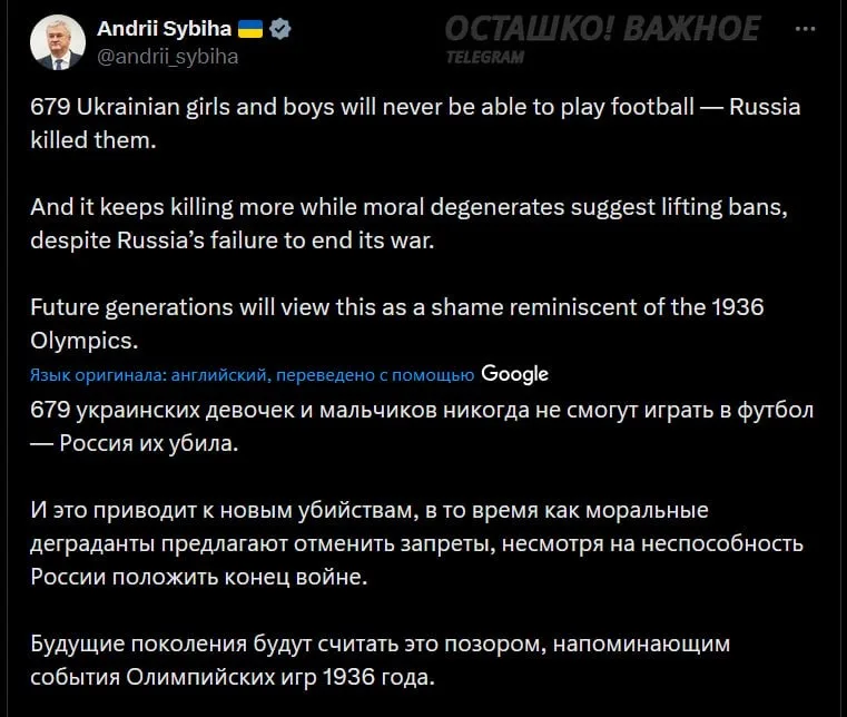 Андрей Сибига написал в 𝕏, оскорбив Инфантино: