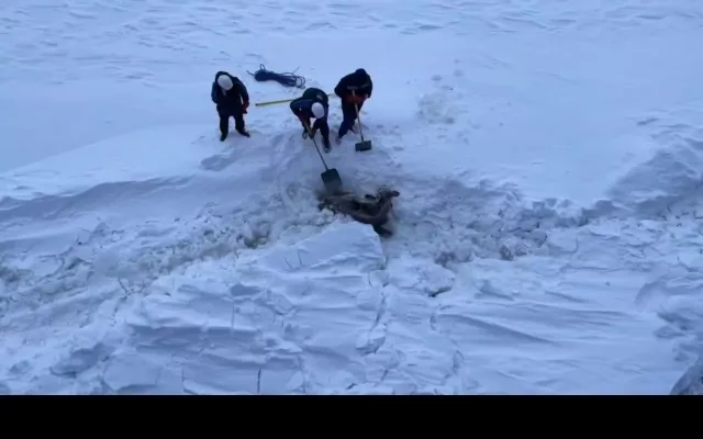Сначала лосиху откопали, но животное ослабло и не могло вырваться из ледового плена. Тогда пришлось привлечь кран, чтобы аккуратно поднять животное. Спасательная операция заняла чуть больше тридцати минут. Лосиха направилась в сторону берега, а экипаж продолжил работу по рейсовому заданию.