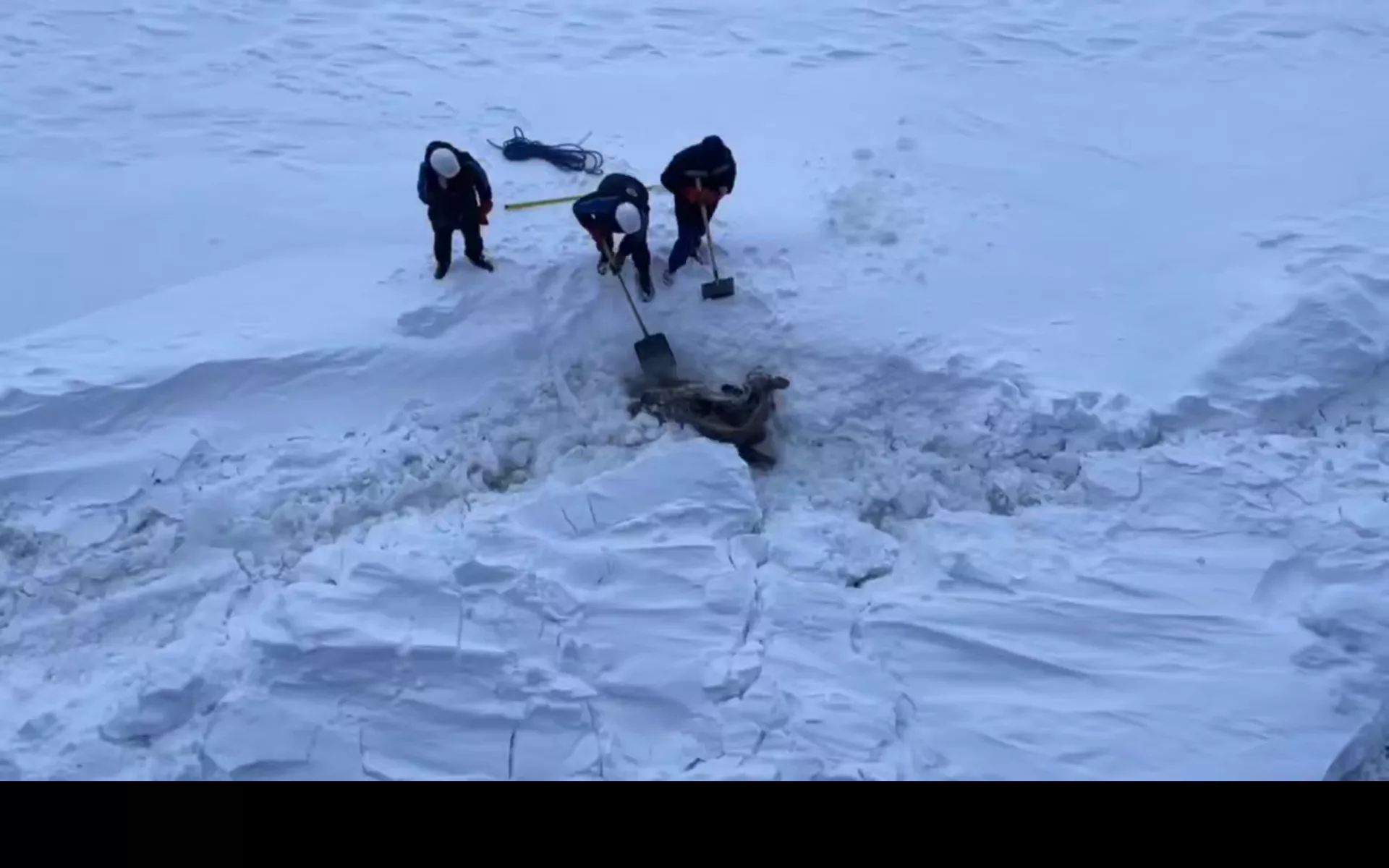 «Животное не могло самостоятельно выбраться из ледовой ловушки, — рассказал капитан «Якутии Дмитрий Никитин. — Мы решили помочь. Остановились, чтобы не покалечить бедолагу, и приступили к спасательной операции».