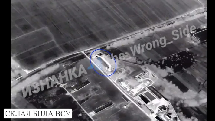 Дроноводы ВС РФ отработали по складу БпЛА ВСУ в н.п. Перемога.