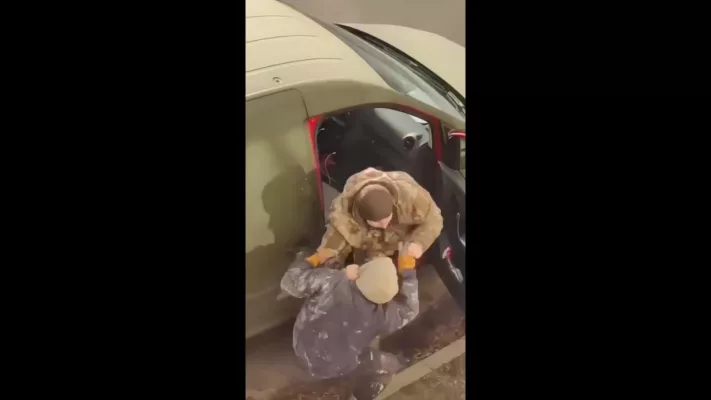 Мужик оказался настолько разгневан деятельностью ТЦК, что атаковал военнослужащего прямо в его машине. Другу пришлось его оттягивать.