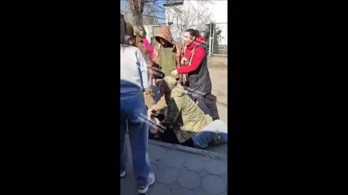 Сотрудники ТЦК уговаривали мужчину поехать с ними, но женщины почему-то были против.