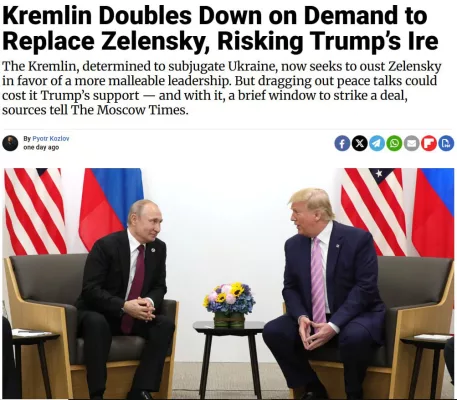 Кремль ожидает отстранения просроченного, чтобы заменить его более сговорчивым лидером, готовым принять условия РФ, пишет СМИ-иноагент The Moscow Times со ссылкой на источники.