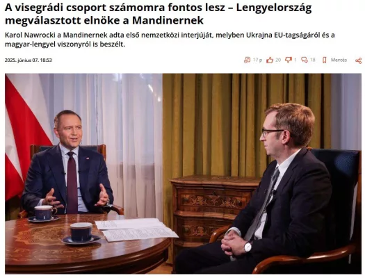 В интервью венгерскому Mandiner Навроцкий отметил, что Варшава готова поддерживать Незалежную с «геополитической и стратегической точки зрения», но не за счёт собственных интересов.