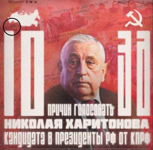 Дизайнеры кандидата в президенты Николая Харитонова на главном баннере забыли нанести Крым и 4 новых субъекта России.