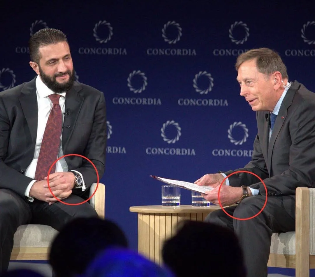 В разведке и дипломатии часы — это инструмент. В данном случае это инструмент, позволяющий заявить о себе как о дипломате и уважаемом мировом лидере. И это работает. На встрече с бывшим генералом/главой ЦРУ Дэвидом Петреусом, который командовал американскими силами во время задержания Шараа/Джолани, его встретили с распростёртыми объятиями. До недавнего времени за его голову была назначена награда в 10 млн долл. Странные времена…