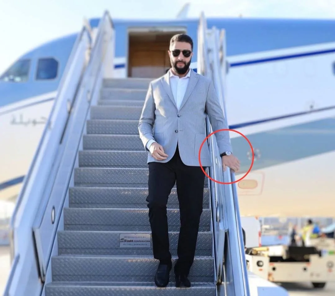 На его запястье Patek Philippe World Time Chronograph 5930G стоимостью 81610 долл. Эти часы резко контрастировали с чёрными тактическими часами, которые он носил, возглавляя марш своих войск на Дамаск, и даже с Seiko и Omega, на которые он перешёл вскоре после свержения Асада. Полевая форма была заменена на строгие костюмы, борода подстрижена. Американские инфлюенсеры называют это «блеском».