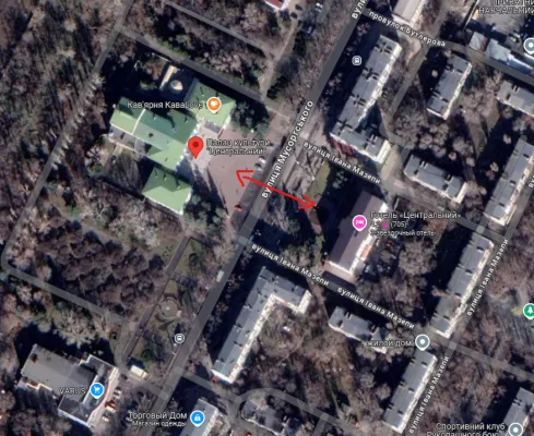 Интересно то, что прилёт был точно по парковке за зданием, но Харьковская прокуратура в своём сюжете место прилёта не показала (хотя, что мешало?). Они показали заправку чуть дальше, дорогу рядом и какой-то камушек, но не саму парковку, а почему? Что там такое было на парковке?