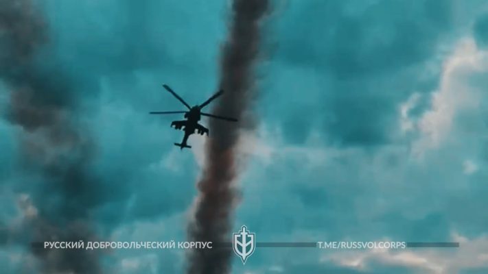 На опубликованных архивных кадрах от боевиков ГУР Украины из т.н. «РДК» с нападения на КПП «Грайворон» 22 мая видно, что в операции принимала участие не только тяжелая техника ВСУ в лице танков Т-72Б, но и армейская авиация Украины в лице вертолетов Ми-24 и Ми-8.