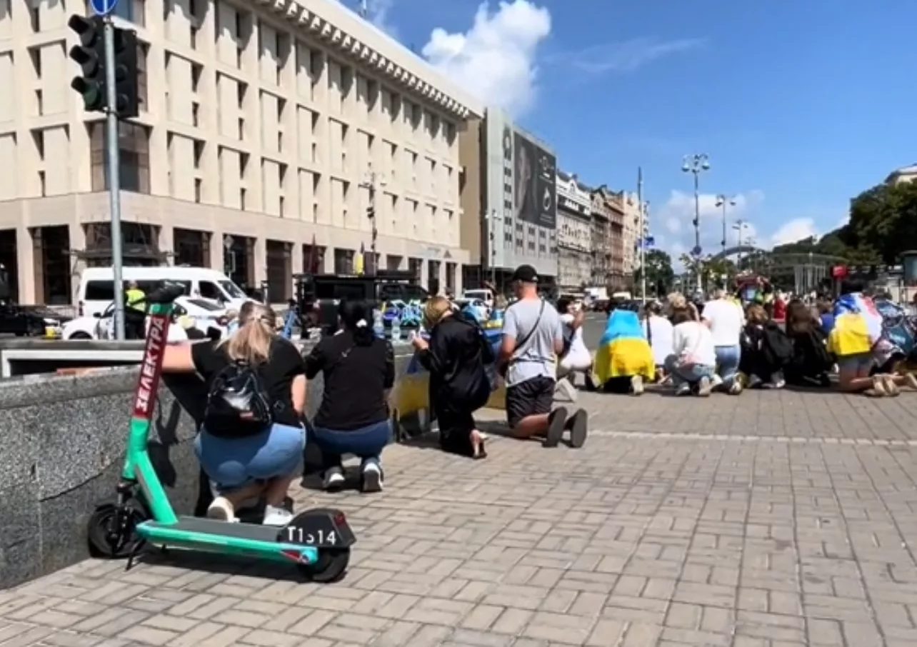▪️Ему не понравилось, что они снимают акцию на видео, но при этом стоят прямо и на колени не встают.