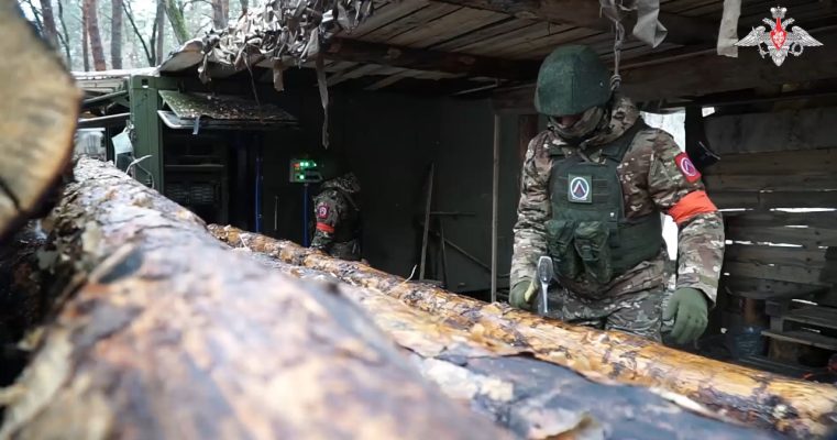 В распоряжении военных инженеров группировки «Центр» мобильный лесопильный комплекс, позволяющий обеспечивать передовые позиции обрезной доской и лесом-кругляком для обустройства и обшивки блиндажей, траншей, ходов сообщения и оружейных погребов.