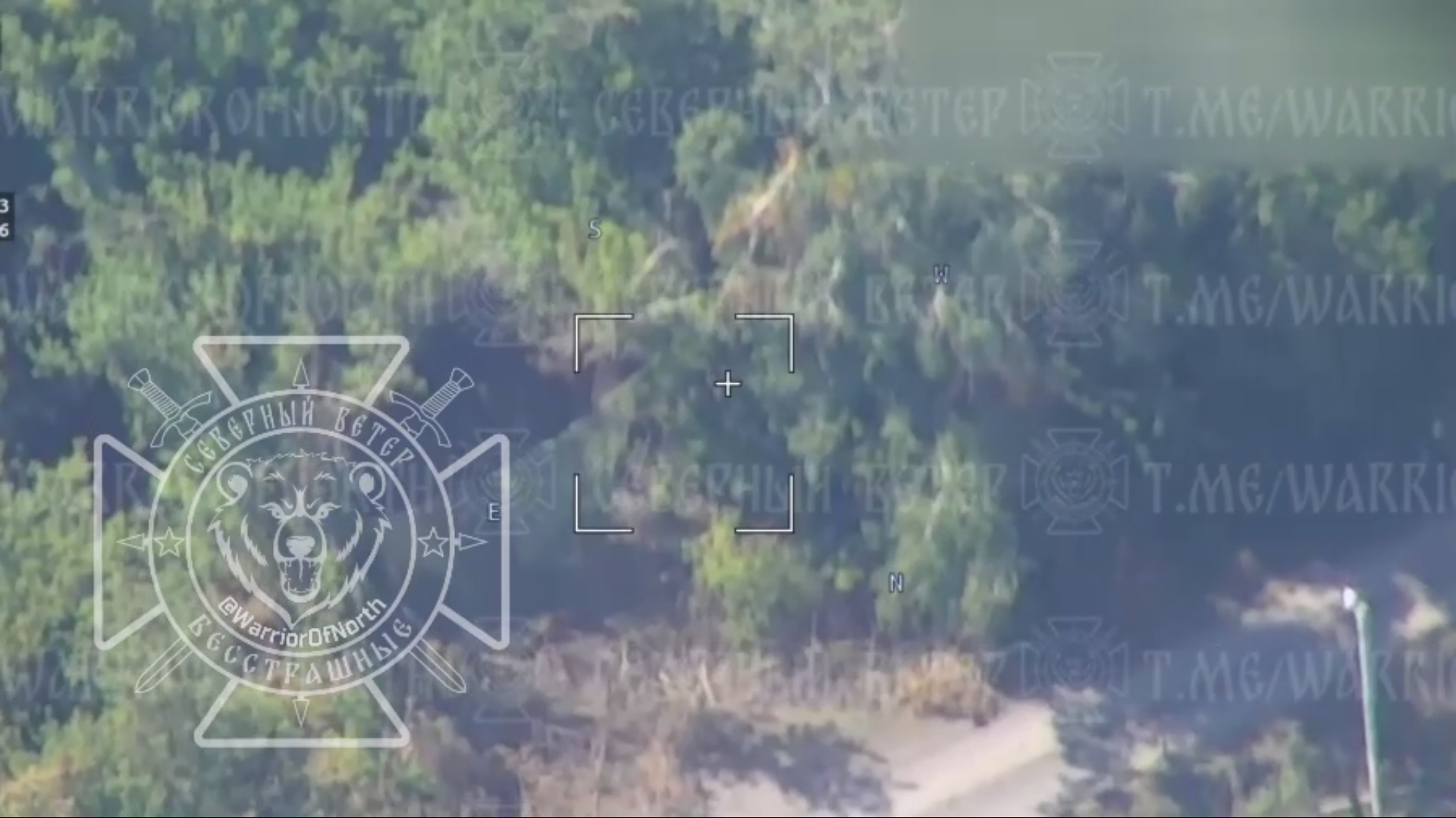 Украинский расчет 152-мм гаубицы расположился среди домов в н.п. Русские Тишки. После чего вычислен и уничтожен «Иксоводами» группировки «Север».