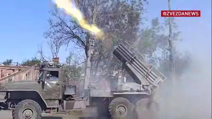 Полный пакет 122-мм реактивных снарядов отправился прямиком к противнику на краматорско-дружковском направлении. Все удары пришлись точно по цели.