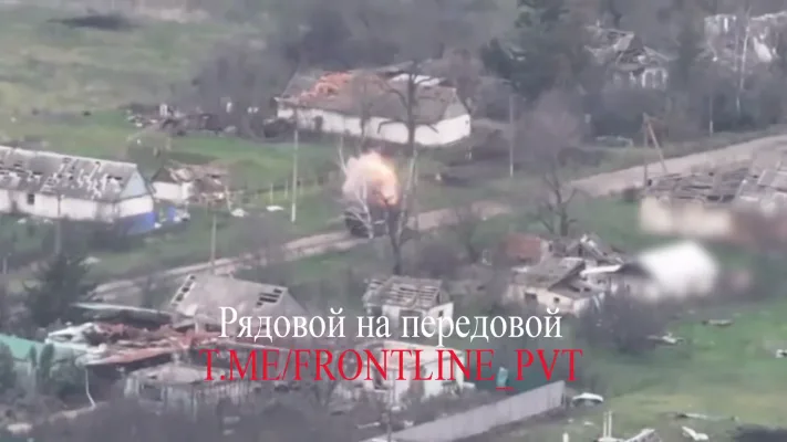 В ходе действий в городской застройке операторы нанесли прицельный удар по бронемашине «Козак», предназначенной для переброски резерва, уничтожив бронемашину, вторым дроном уничтожили личный состав.
