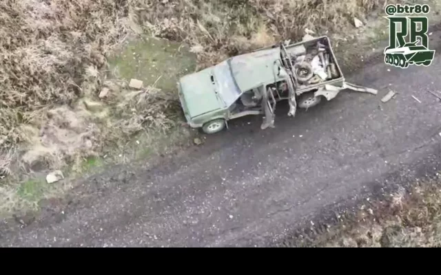 Удар нанесен FPV-дроном в левую часть транспорта боевиков, пытавшихся подвезти боеприпасы и провести ротацию.