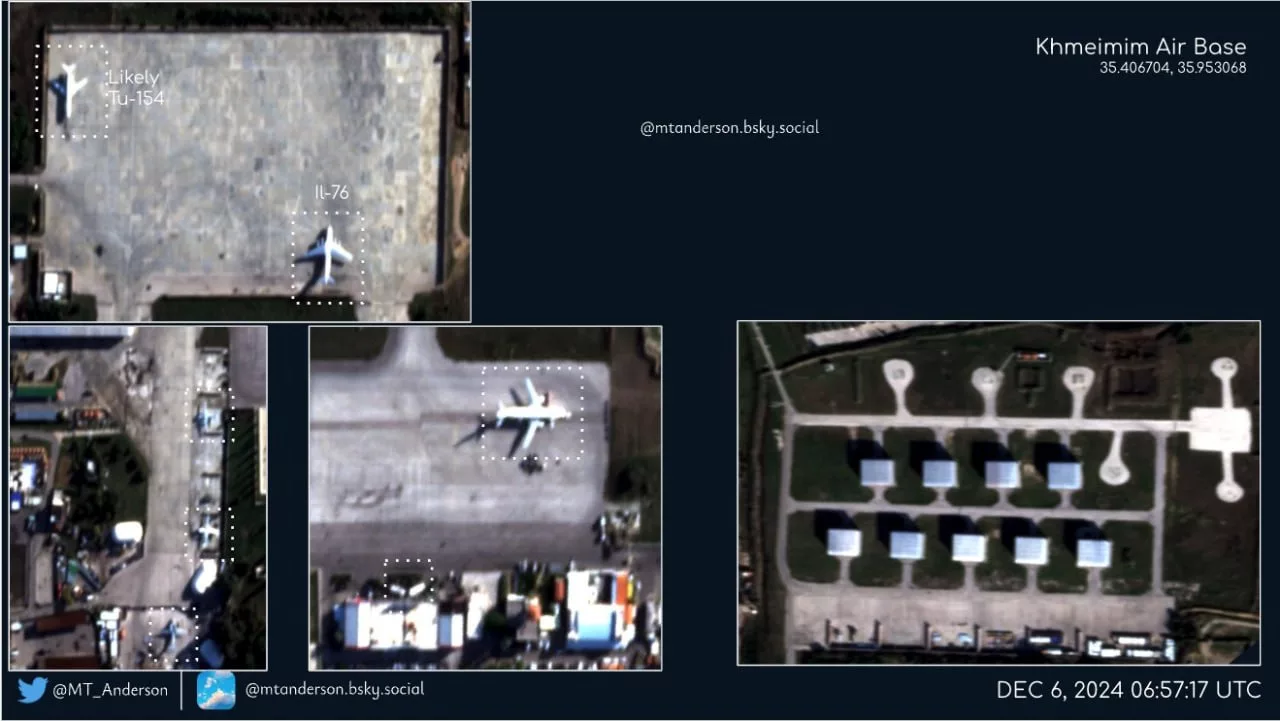 Так, на Хмеймиме были замечены стоящие Ил-76 и Ту-154, а также прочие самолеты в ее западной части. Бомбардировщики Су-34 и истребители Су-35С уже несколько лет как прячутся в возведенных защитных ангарах, поэтому спутник их засечь не в состоянии (один из многих плюсов иметь ангары).