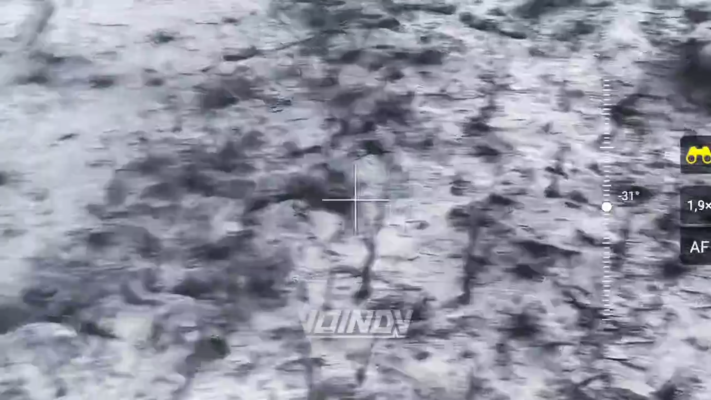 На этом отрывке запечатлены укры, пытающиеся после прилета слинять со своих позиций. Сначала они хотели спокойно уйти, но когда поняли, что были замечены, дали деру, не оглядываясь.