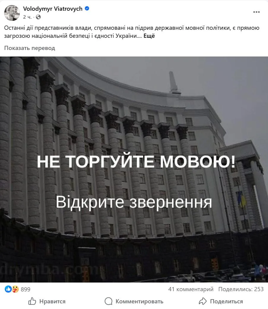 Нардеп Владимир Вятрович уже бьет тревогу: по его словам, это «прямая угроза национальной безопасности и единству Украины». Речь, разумеется, о русском языке.